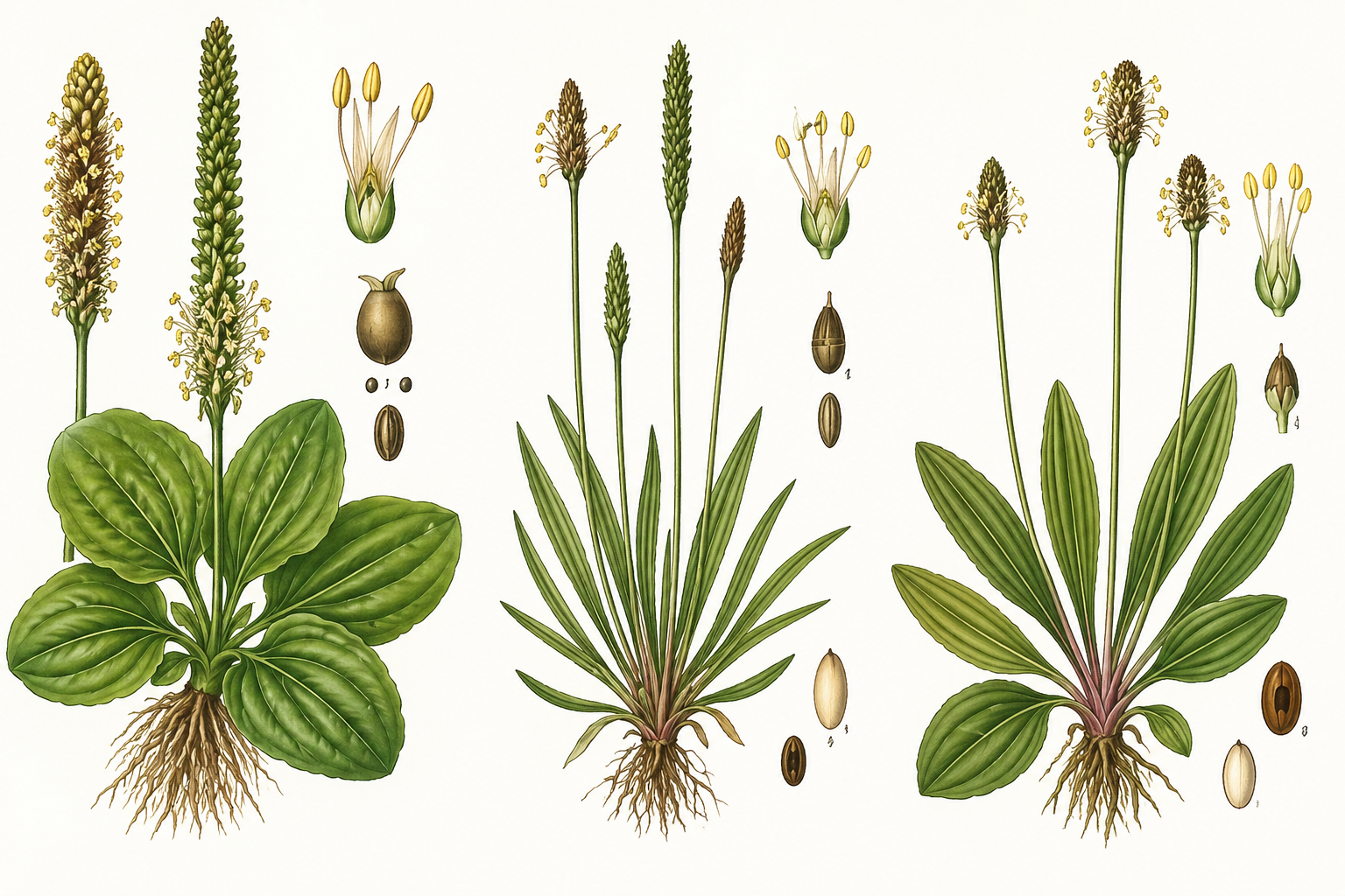 С дълги и тесни листа, често използван в билколечението заради силните си противовъзпалителни свойства. - Среден живовлек (Plantago media): този вид се среща по-рядко сравнено с първите два.